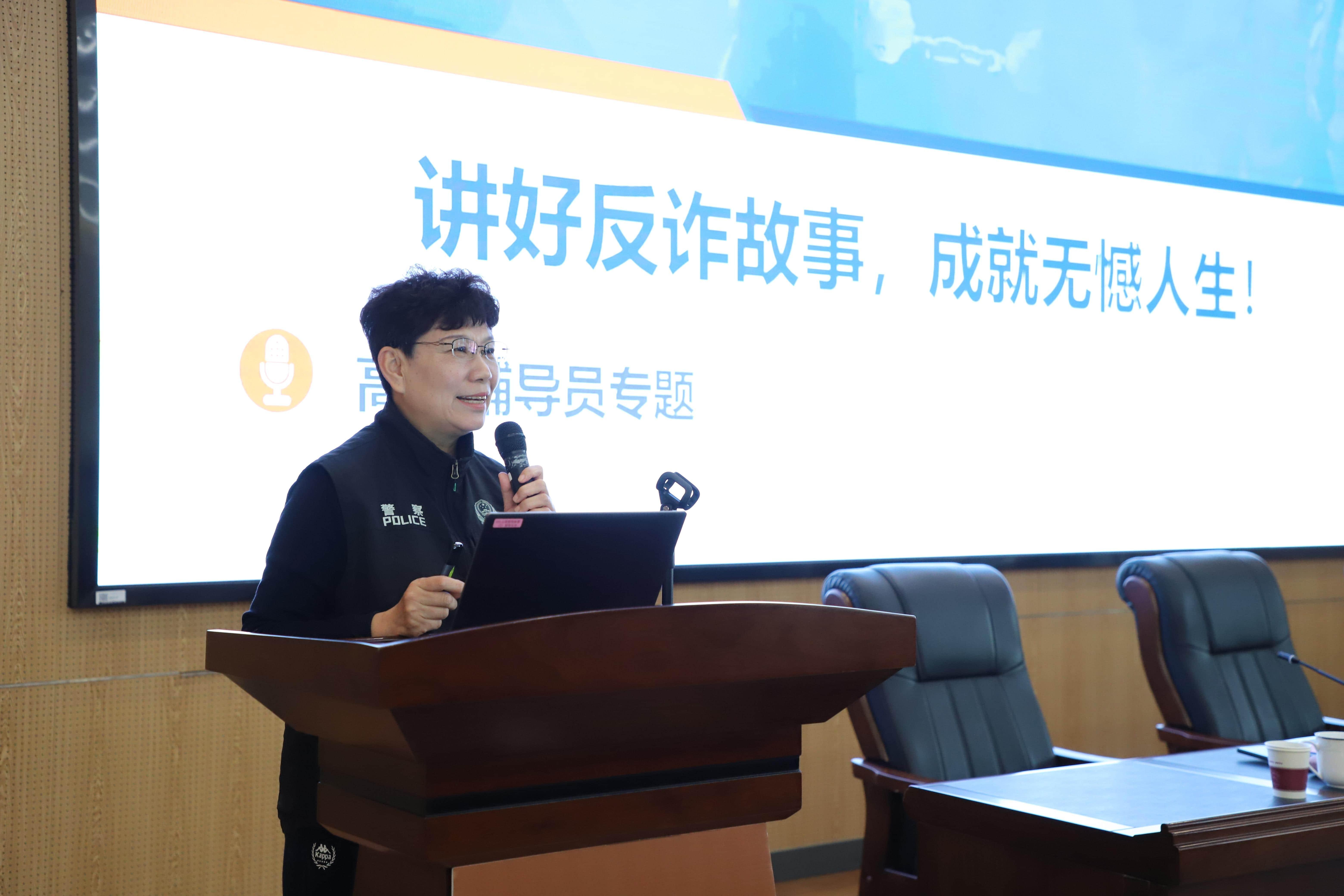 专题工作会议后,学校特邀南京市公安局反诈领域资深专家、内保支队首席反诈专家陈红燕,为全体参会人员开展了题为“讲好反诈故事,成就无憾人生!——高校辅导员专题”反诈培训讲座。