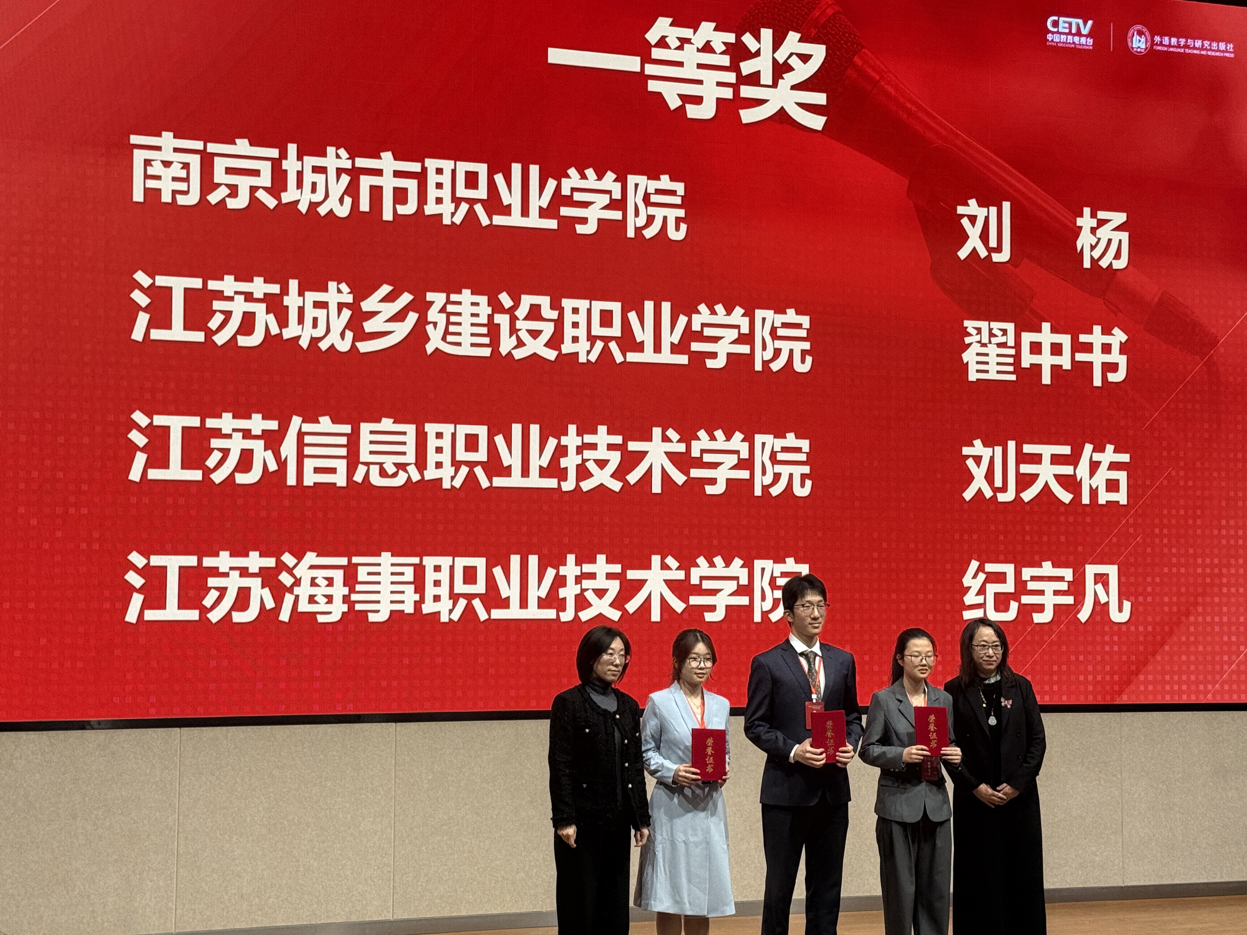 11月7日至9日,在2025“中国教育电视台·外研社杯”职场英语挑战赛江苏赛区英语演讲大赛中,我校通识教育学院焦传俊老师指导的3名参赛选手全部获奖。其中,数字财商学院2024级跨境电子商务专业刘杨同学和智能工程学院2024级计算机应用技术专业彭秀敏同学双双晋级决赛,喜获一等奖、二等奖;数字财商学院2025级大数据与会计专业陈语淇同学获得三等奖。我校在该赛项上首次实现两名选手同时进入决赛的突破,也创造了连续两年取得省级一等奖的佳绩!