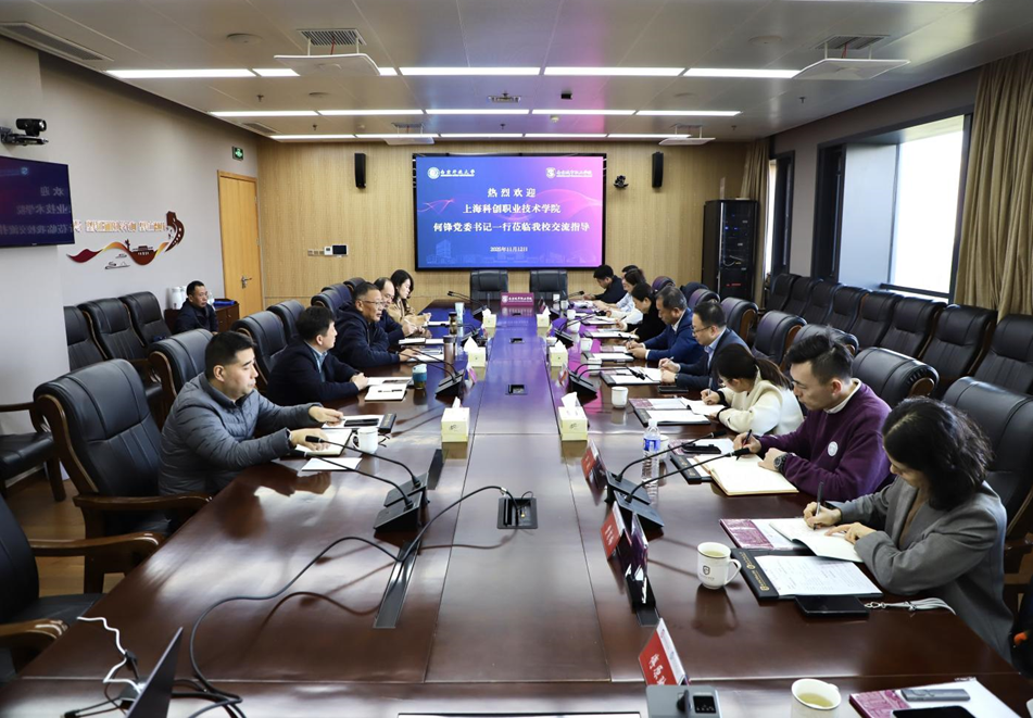 11月12日下午,上海科创职业技术学院党委书记何锋、副校长汪崇德一行10人到我校调研交流。校党委书记孙朝晖热情接待了何书记一行,党委委员、智能工程学院院长力志,党政办主任陈卓,人事处副处长李鹦,康养工程学院副院长周康等相关部门负责人参加交流。