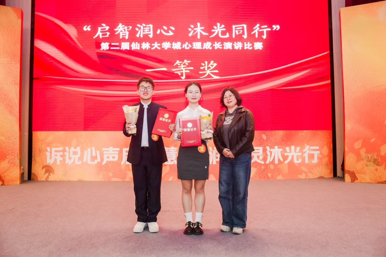 近日,由江苏省仙林大学城心理健康教育研究中心主办的“启智润心 沐光同行”第二届心理成长演讲比赛决赛圆满落幕。我校作品《你好 王景琛》凭借深刻的主题内涵、真挚的情感表达和出色的现场演绎,摘取一等奖。