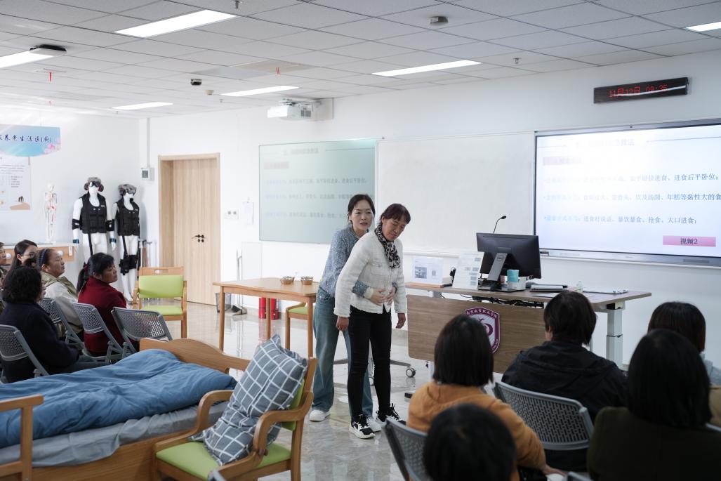 “学习强国”“交汇点新闻”等媒体平台则突出我校“校内虚实结合,校外真岗实战”的立体化实践网络。例如,与江苏瑞芝康健养老产业集团共建实体化“产业学院”,联合编制《智慧健康养老产教融合基地建设与运行规范》,成为省内首个智慧养老产教融合标准。此外,学校通过“企业浸润周”“移动课堂”等形式,让学生深入养老机构、社区一线,在双导师指导下完成真实任务,实现“毕业即熟练工”。