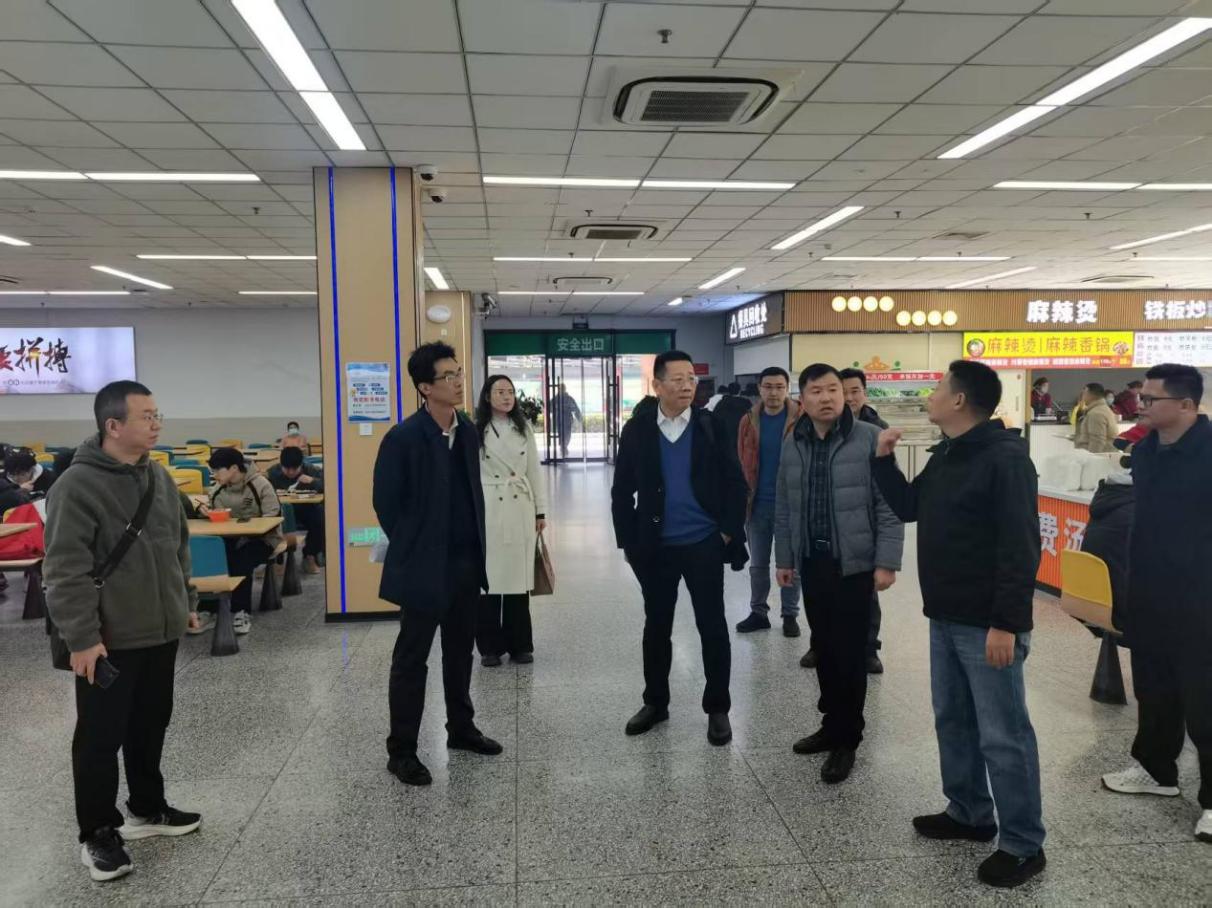 检查组采取实地走访、查阅台账、现场问询等方式,重点检查了科创楼、实验(实训)场所、图书馆、消(监)控室、食堂、学生公寓等关键场所。在消控室,检查组核查值班值守、设备运行及台账记录情况,要求强化应急处置能力,发挥安全预警中枢作用。在食堂,检查组深入后厨、储物间等区域,严查燃气使用、消防设施、食材安全及应急通道畅通情况,强调压实主体责任,杜绝安全隐患。
