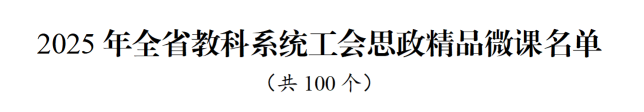 遴选活动启动以来,我校工会高度重视,广泛动员教职工参与申报。马克思主义学院积极响应,精心组织,姜慧和张蓉老师的思政微课聚焦身边工匠,以小见大,凭借鲜明的政治性、深刻的思想性、创新的呈现形式和良好的教育实效,在全省163家基层工会推荐的391个作品中脱颖而出,成功入选百项优秀作品名单。