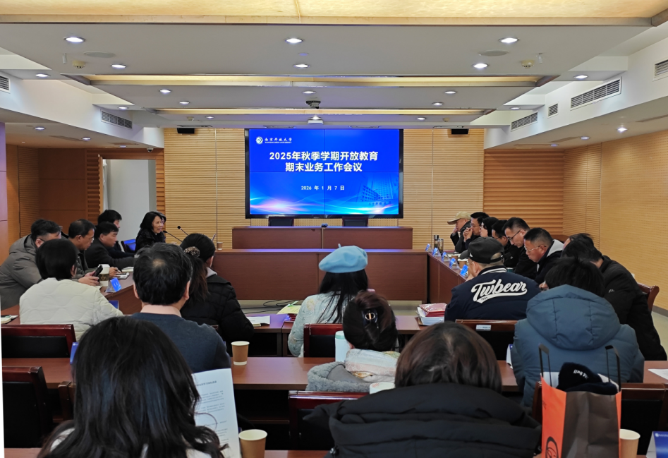 1月7日下午,我校召开2025年秋季学期开放教育期末业务工作会议,副校长江景出席会议。会议由开放教育中心主任乐艺主持,全系统14家学习中心的校领导和相关工作负责人参会。