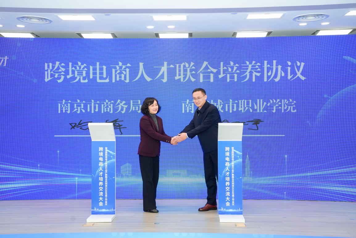 1月9日至10日,以“金陵聚智 跨境育才”为主题的跨境电商人才培养交流大会暨全国跨境电子商务行业产教融合共同体2026年度工作会议,在我校新街口校区举行。本次大会由南京市商务局、南京市教育局指导,南京城市职业学院与南京电子商务协会联合主办,来自政府部门、行业协会、职业院校及跨境电商企业的200余名代表参加。
