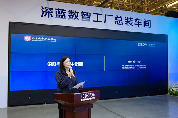 席庆芝欣慰地回顾了首届订单班学员从课堂到车间的成长与转变,并指出,在新能源汽车产业蓬勃发展的黄金期,同学们的选择恰逢其时、大有可为。她对同学们提出三点要求:一是始终把“安全”放在首位,严格遵守生产现场的各项规章制度;二是沉下心来“学真本事”,在真实生产环境中将理论与实践融会贯通;三是勤勉踏实善思考,在练好基本功的同时,勇于观察提问,挖掘优化潜力。她表示,南京长安将全力为订单班同学创造良好的实习环境,配强企业导师队伍,关注大家的生活与成长。