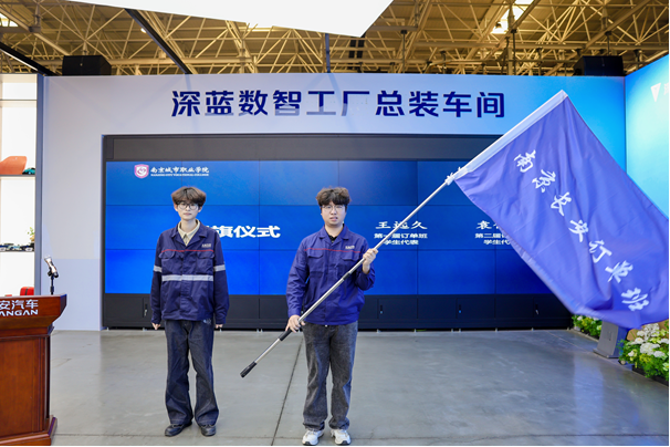 现场,首届订单班优秀学生代表王远久,将承载着责任、技艺与期望的“长安订单班”班旗,郑重交到第二届订单班学生代表袁伟伦手中。旗帜的传递,不仅寓意着优良学风与企业精神的延续,更标志着新征程的正式启航。