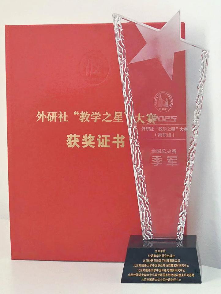 4月16日,2025年外研社“教学之星”大赛(高职组)全国总决赛在江苏省会议中心圆满落幕。我校通识教育学院潘敏、支婷婷、赵羽涵、沈玲教师团队在全国9支特等奖晋级队伍中脱颖而出,以第三名的优异成绩斩获全国总决赛季军。